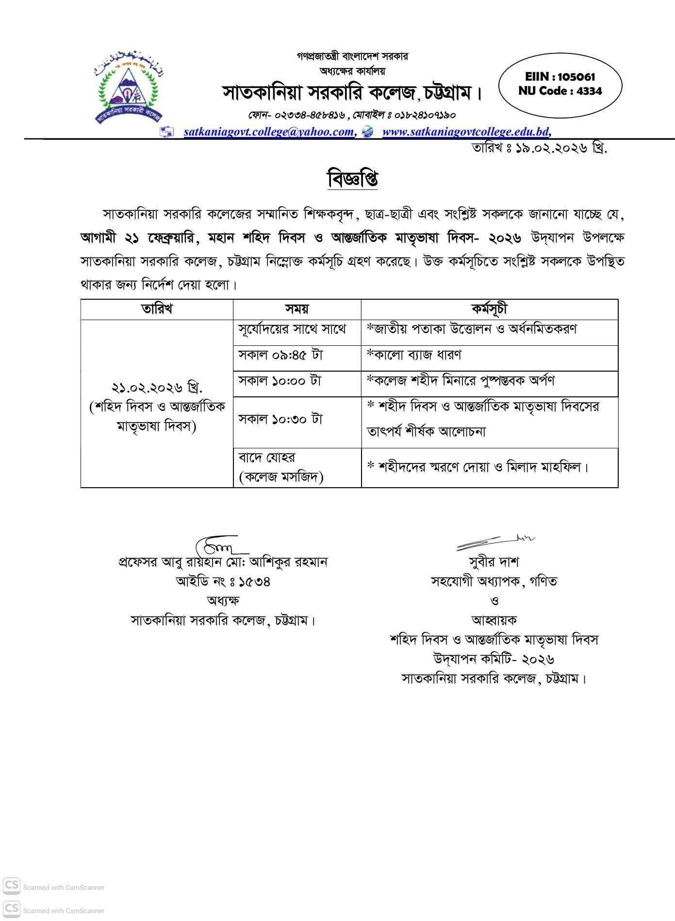 মহান শহিদ দিবস ও আন্তর্জাতিক মাতৃভাষা দিবস-২০২৬ উদযাপন উপলক্ষে গৃহীত কর্মসূচী।