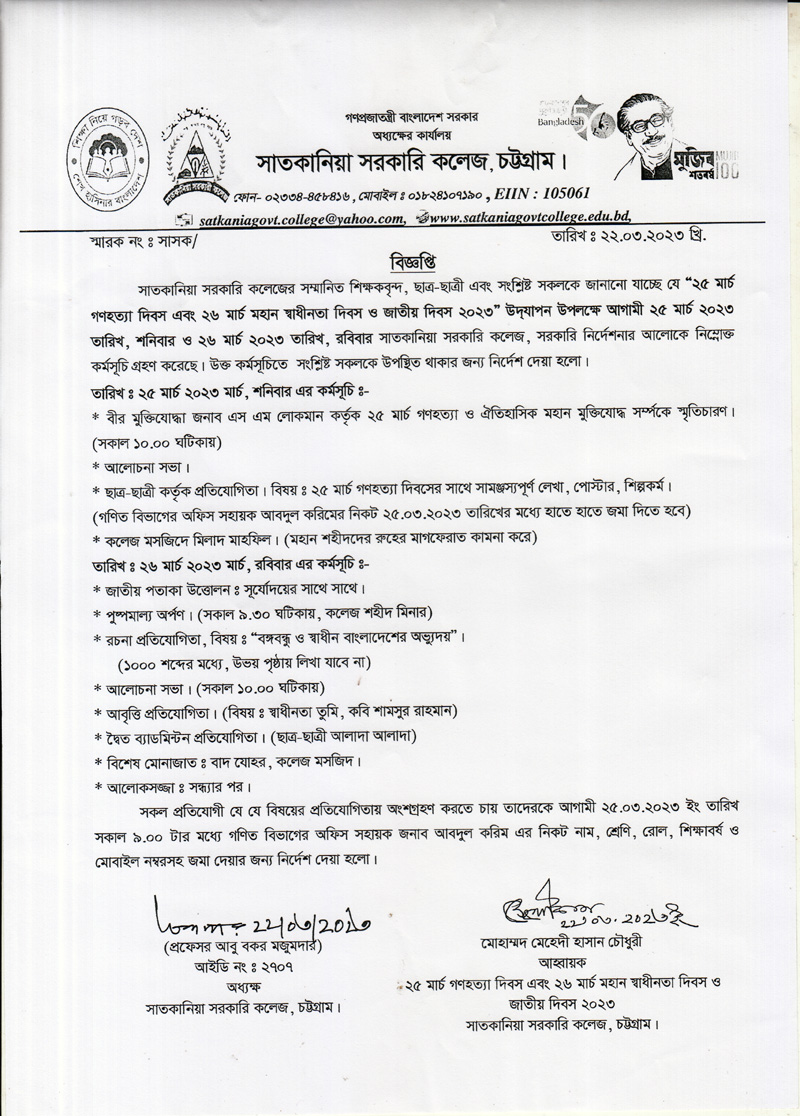 বাংলাদেশ ন্যাশনাল ক্যাডেট কোর (বিএন.সি.সি), সাতকানিয়া কলেজ শাখায় ভর্তি বিজ্ঞপ্তি