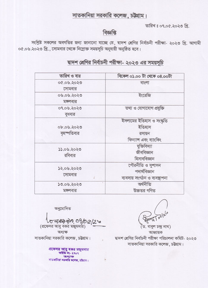উচ্চ মাধ্যমিক পরীক্ষা- ২০২৩ এর ব্যবহারিক পরীক্ষার সময়সূচি