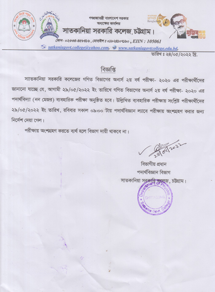 স্নাতক (সম্মান) ২য় বর্ষের গণিত বিভাগের নন মেজর ব্যবহারিক পরীক্ষা সংক্রান্ত