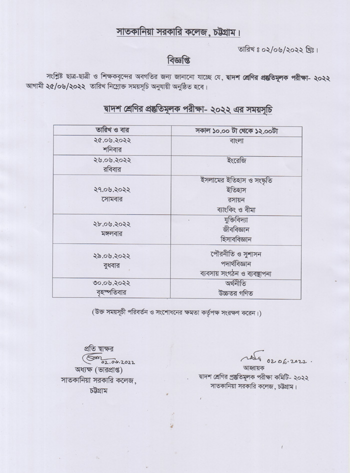 দ্বাদশ শ্রেণির প্রস্তুতিমূলক পরীক্ষা- ২0২২ এর ফলাফল প্রকাশের বিজ্ঞপ্তি