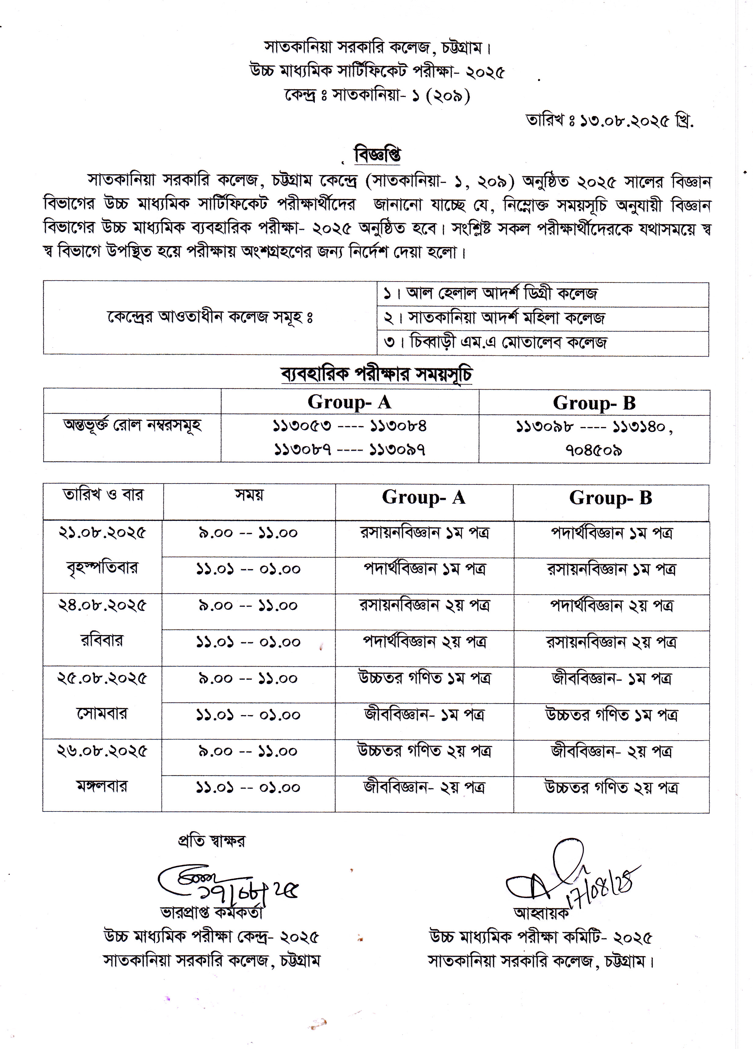 একাদশ শ্রেণির জন্য বিজ্ঞপ্তি