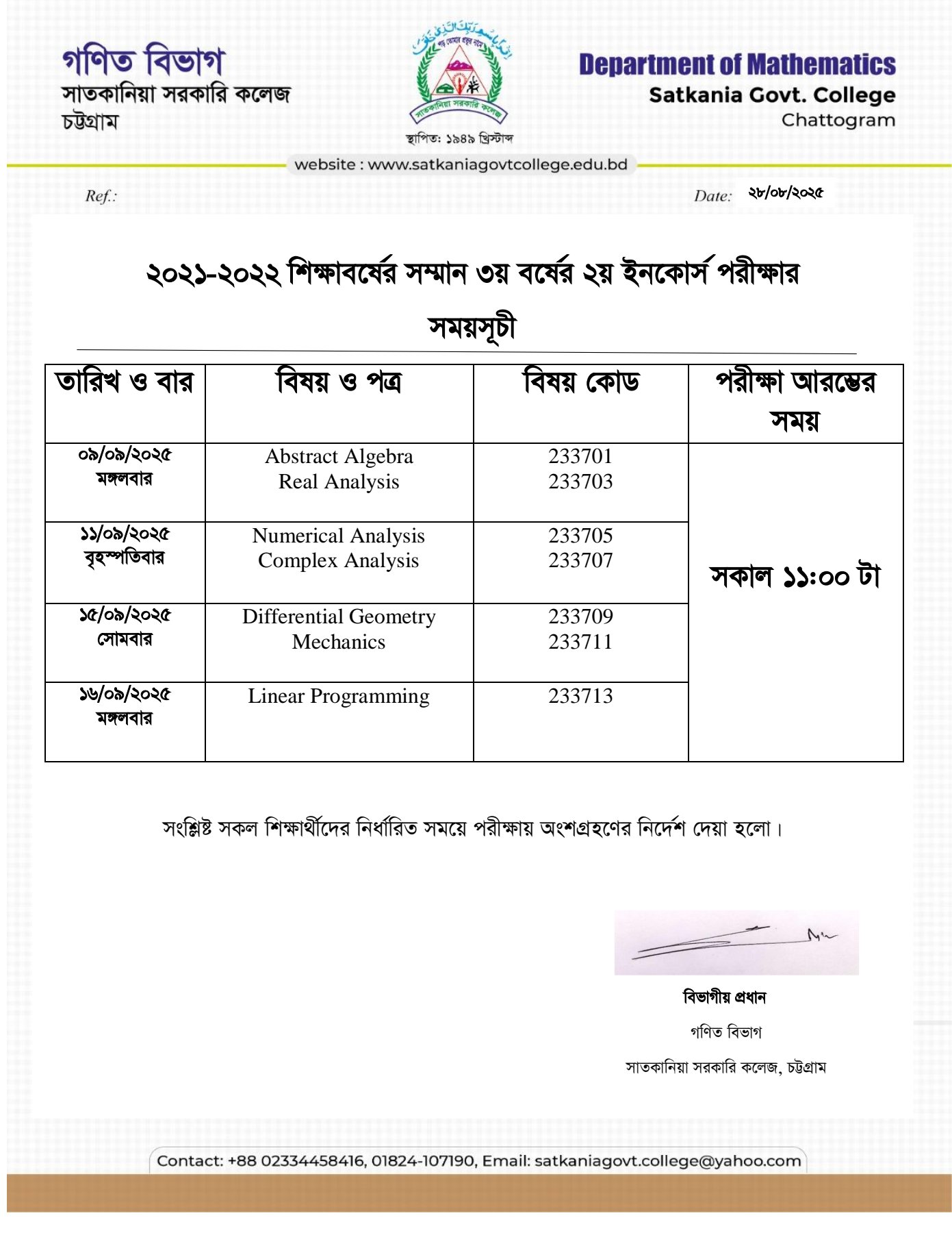 অনার্স ৩য় বর্ষের জন্য বিজ্ঞপ্তি