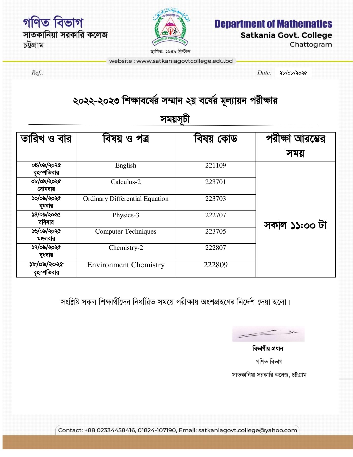 স্নাতক (পাস) ২য় বর্ষের ১ম ইনকোর্স পরীক্ষা- ২০২৪ এর সময়সূচি