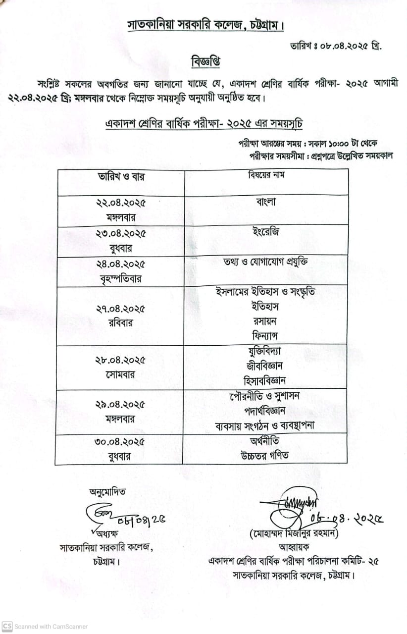 একাদশ শ্রেণির বার্ষিক পরীক্ষা- ২০২৫ এর সময়সূচি