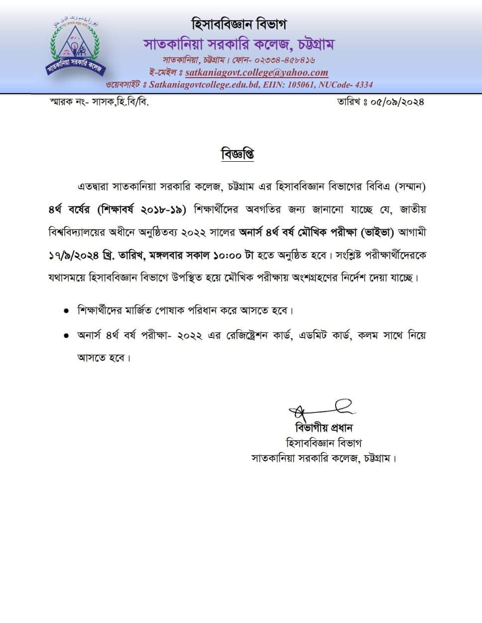 হিসাববিজ্ঞান বিভাগের ২০১৮-১৯ শিক্ষাবর্ষের ২০২২ সালের অনার্স ৪র্থ বর্ষ মৌখিক পরীক্ষা প্রসঙ্গে।