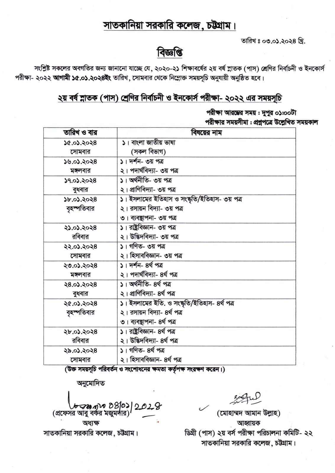 ডিগ্রি (পাস) ২য় বর্ষের ইনকোর্স ও নির্বাচনী পরীক্ষা-২০২২ এর সময়সূচি।