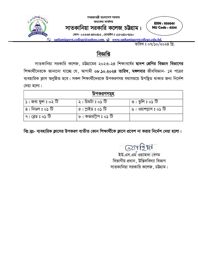 দ্বাদশ শ্রেণি বিজ্ঞান বিভাগের জন্য জরুরী বিজ্ঞপ্তি