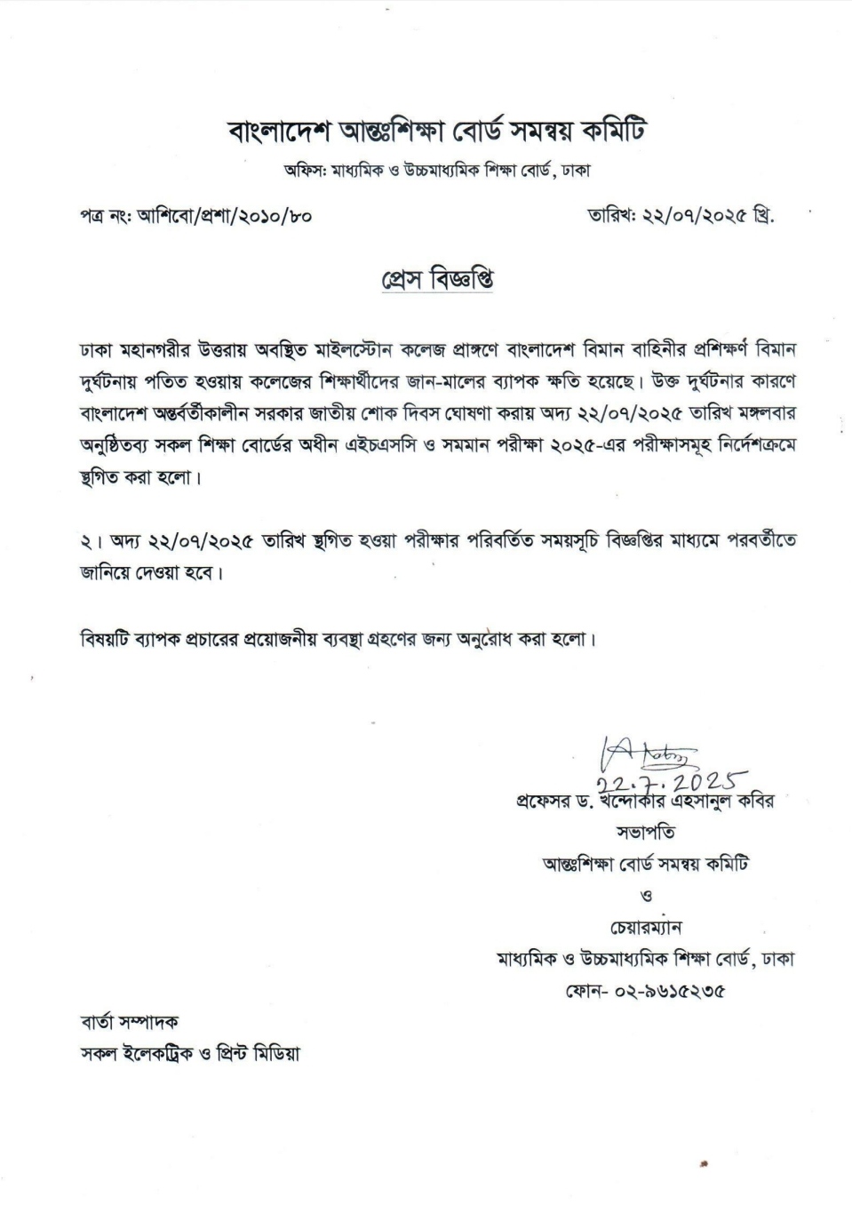 এইচএসসি ও সমমানের পরীক্ষা স্থগিত সংক্রান্ত