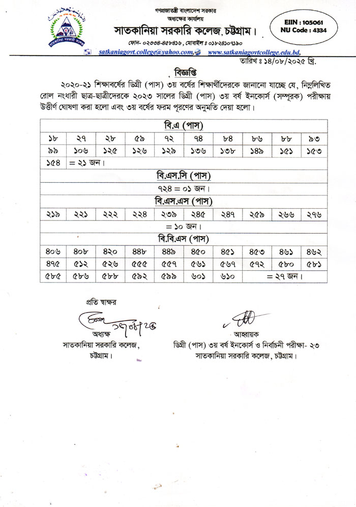 ২০২০-২০২১ শিক্ষাবর্ষের ডিগ্রি (পাস) ৩য় বর্ষের ইনকোর্স ও মূল্যায়ন পরীক্ষার ফলাফল।