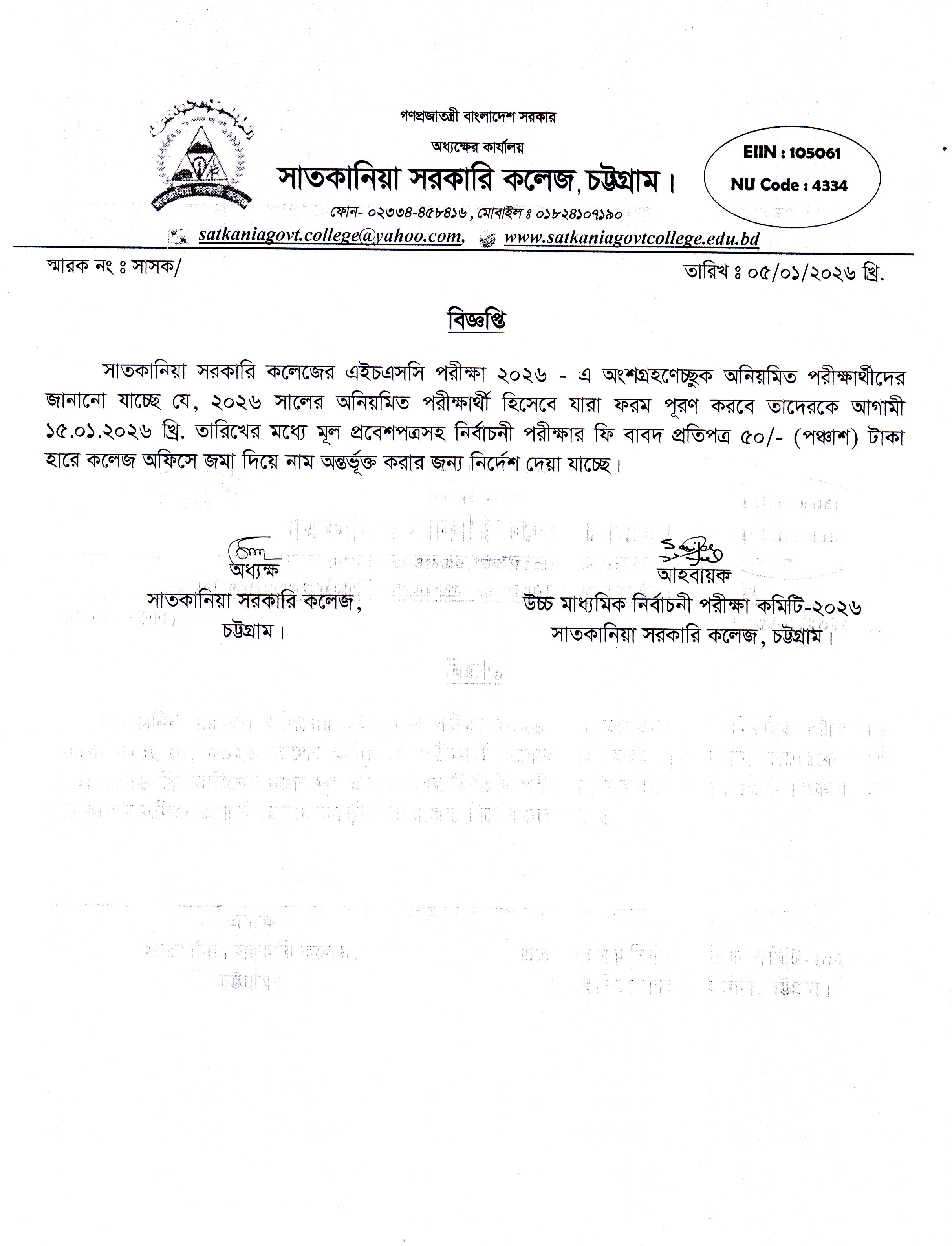 ২০২৬ সালের উচ্চ মাধ্যমিক অনিয়মিত পরীক্ষার্থীদের জন্য নির্বাচনী পরীক্ষা প্রসঙ্গে।