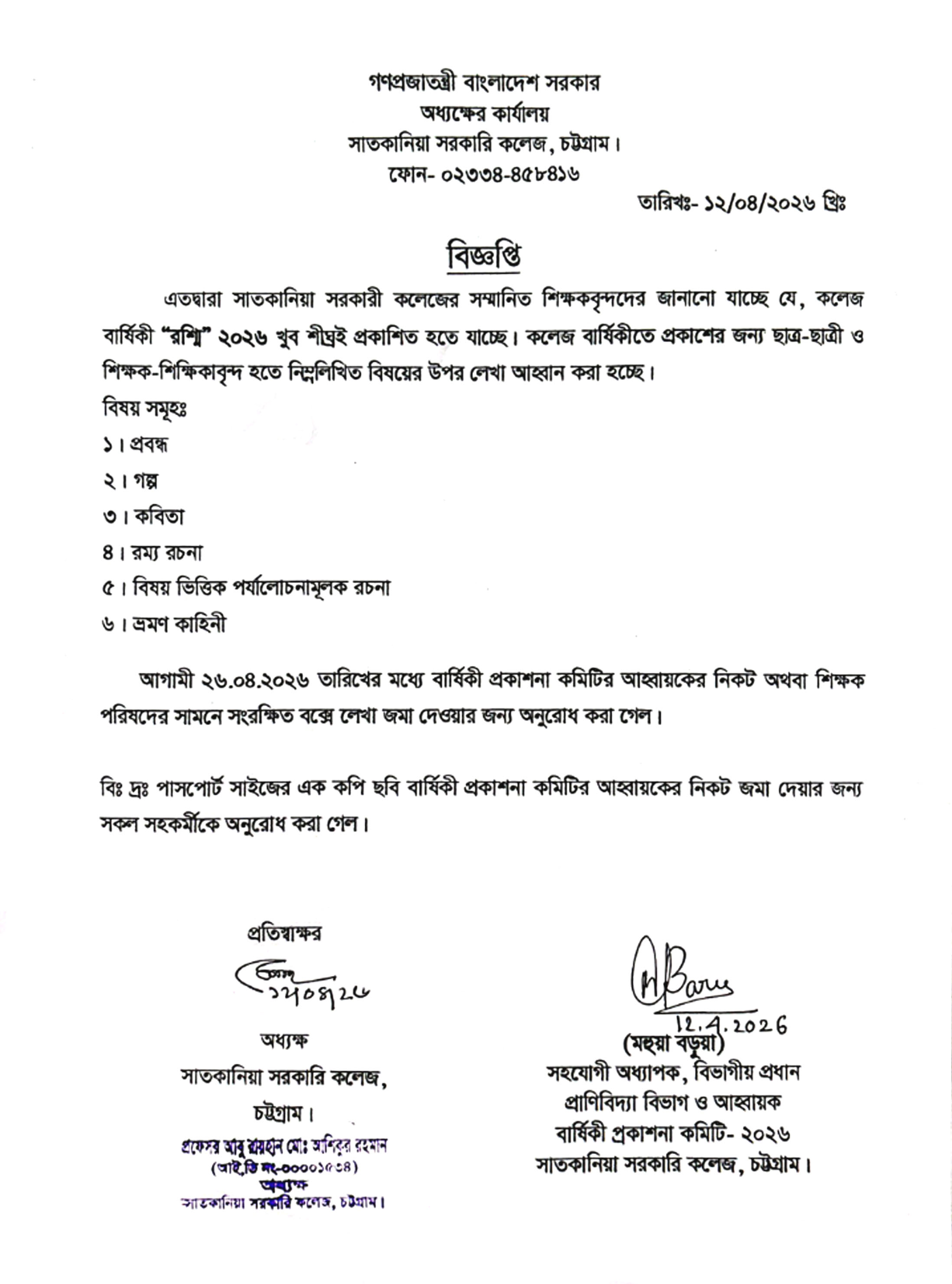 কলেজ ম্যাগাজিন সংক্রান্ত
