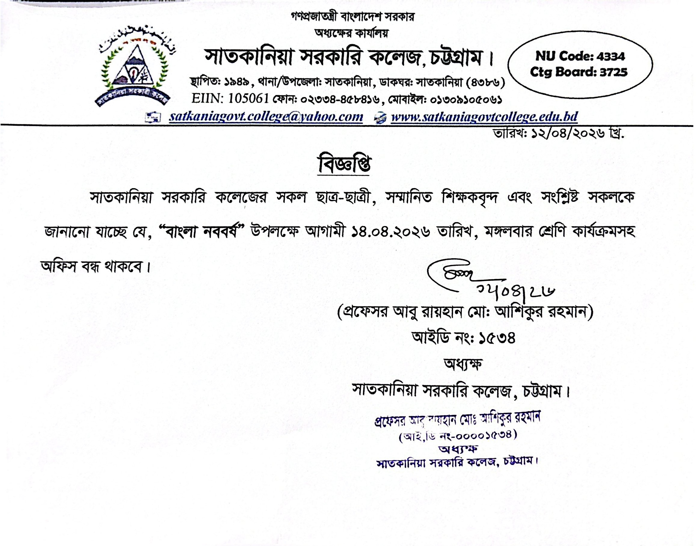 সাতকানিয়া সরকারি কলেজ, চট্টগ্রাম।